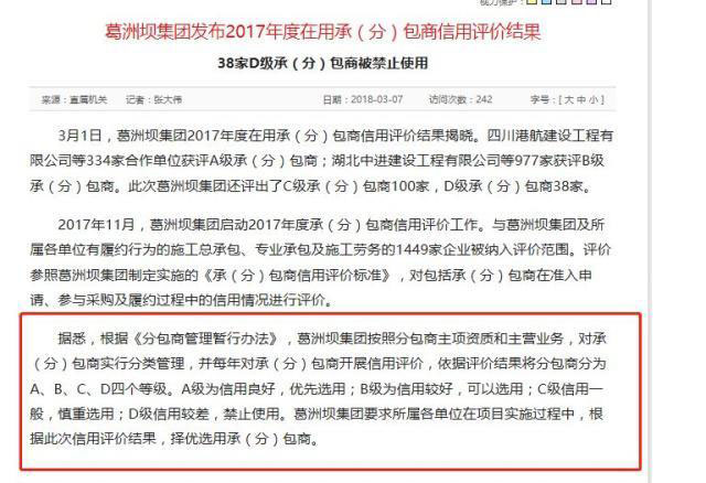 雖然否認(rèn)了違法分包,但葛洲壩在公告中表示,“作為總承包方,葛洲壩電力公司存在項(xiàng)目管理不善問題,主要包括分包履約過程管控不嚴(yán)、分包項(xiàng)目質(zhì)量監(jiān)測不到位等?!?
