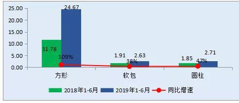 2019上半年新能源汽車各電池形狀裝機(jī)電量分析(GWh)
