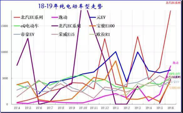 6月的純電動車型表現(xiàn)優(yōu)秀,主力車型走勢分化。19年6月電動車銷量較高的是北汽EU系列、元EV、榮威Ei5、江淮iev6e\ 奇瑞eQ電動車、帝豪EV、比亞迪e5等。