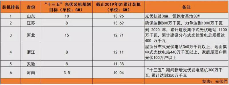自從西部地區(qū)頻發(fā)限電之后,光伏裝機(jī)的重點(diǎn)便轉(zhuǎn)移至中東部的山東、江蘇、安徽、浙江等地區(qū)。這些地區(qū)工商業(yè)發(fā)達(dá),用電負(fù)荷大,天然具備消納光伏電力的潛力。然而,幾年之后,全國光伏發(fā)電累計裝機(jī)規(guī)模TOP 5的省份分別為山東、江蘇、河北、浙江以及安徽。新疆、寧夏、青海等曾經(jīng)的光伏“大省”已被遠(yuǎn)遠(yuǎn)拋在后面。從上表可以看出,截止2019年第一季度,上述六個中東部省份的光伏裝機(jī)規(guī)模已占全國總裝機(jī)的40%左右。