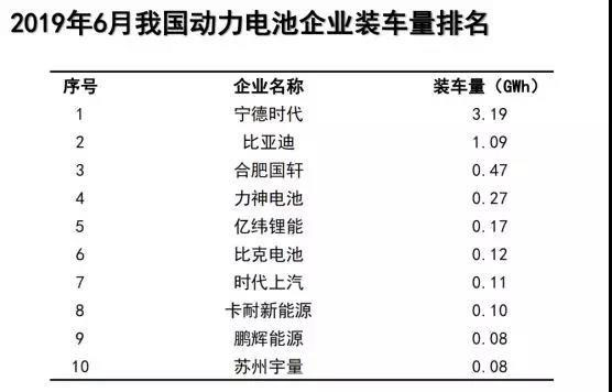 2019年6月我國動力電池裝車量數(shù)據(jù)顯示,我國新能源汽車市場共計52家動力電池企業(yè)實現(xiàn)裝車配套,較5月份增加11家。排名前3家、前5家、前10家動力電池企業(yè)動力電池裝車量分別為4.8GWh、5.2GWh和5.7GWh,占總裝車量比分別為71.9%、78.6%和86.0%。