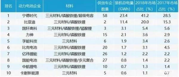 我國動力電池市場繼續(xù)向頭部企業(yè)集中。以2018年動力電池裝機(jī)量為參考,十大龍頭企業(yè)包括:寧德時代、比亞迪、國軒高科、力神、孚能科技、比克電池、億緯鋰能、國能電池、中航鋰電、卡耐新能源。