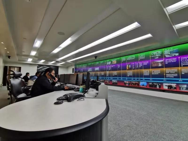 財務(wù)人員在資金管控中心信息大屏前核對數(shù)據(jù)。(張玉峰 攝)