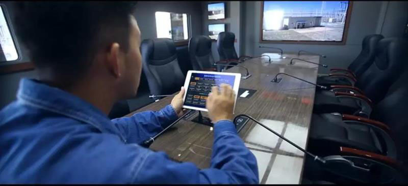 國網(wǎng)新疆電力員工利用移動應(yīng)急指揮系統(tǒng)遠程監(jiān)控指揮現(xiàn)場應(yīng)急搶修。(李江 攝)