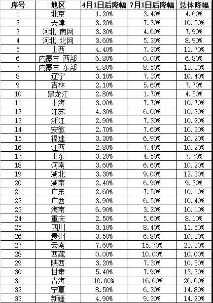 (二)各?。▍^(qū)、市)降電價數(shù)據(jù)情況
