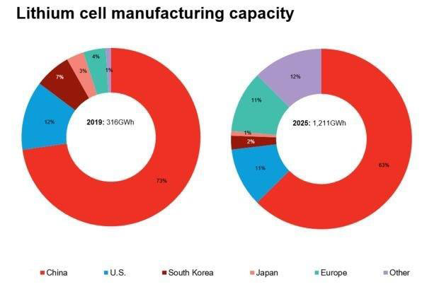 ▲到2025年,歐洲電池制造市場(chǎng)份額將從今年的4%增長(zhǎng)到11%