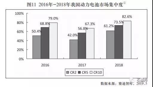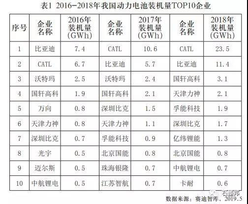 2018年,我國(guó)實(shí)現(xiàn)新能源汽車配套的動(dòng)力電池廠商下降至90家,較2016年減少一半,較2017年下降33%。與此同時(shí),動(dòng)力電池市場(chǎng)集中度不斷提高,正逐步向?qū)幍聲r(shí)代、比亞迪兩家龍頭企業(yè)集中。