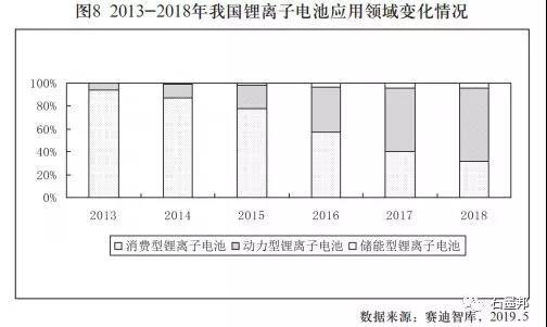從2015年開始,隨著動(dòng)力型鋰離子電池產(chǎn)量迅猛增長(zhǎng),我國(guó)鋰離子電池產(chǎn)業(yè)結(jié)構(gòu)發(fā)生了顯著變化,消費(fèi)型鋰離子電池獨(dú)大的市場(chǎng)格局被打破。從鋰離子電池出貨量看,2018年我國(guó)鋰離子電池總出貨量達(dá)到了102GWh,同比增長(zhǎng)27%。