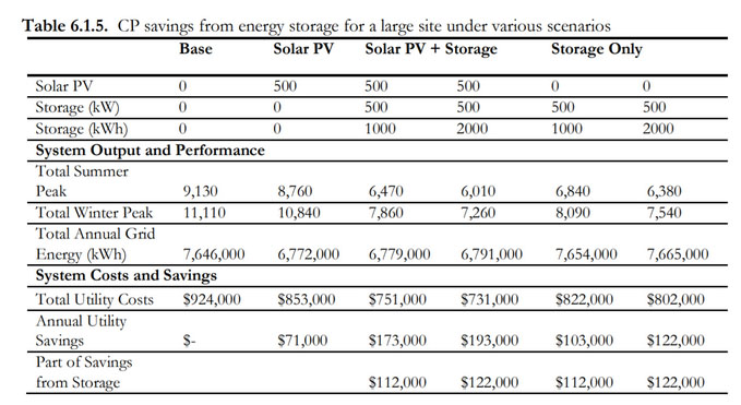在演示的一個模型中,相對于“重疊峰值”(CP)定價,從太陽能發(fā)電設(shè)施,太陽能+儲能、獨立部署儲能系統(tǒng)的各種配置中展示了其節(jié)省的成本。例如一個裝機容量為500kW的太陽能發(fā)電設(shè)施和一個500kW/2MWh儲能系統(tǒng)每年節(jié)省電力費用為193,000美元。