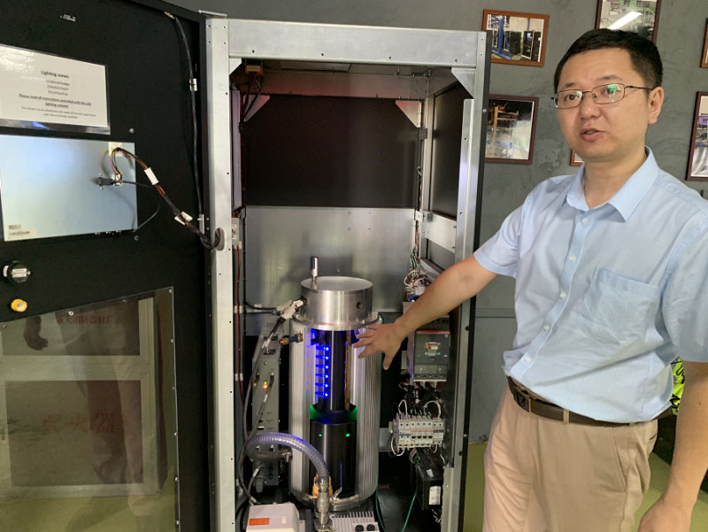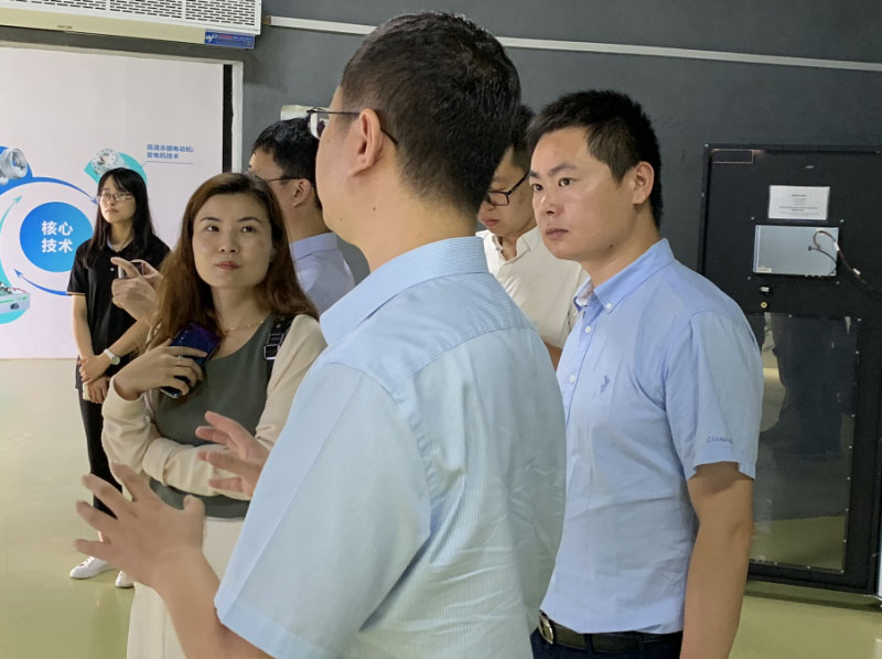微控新能源副總裁陳燁向調(diào)研團介紹磁懸浮飛輪技術(shù)