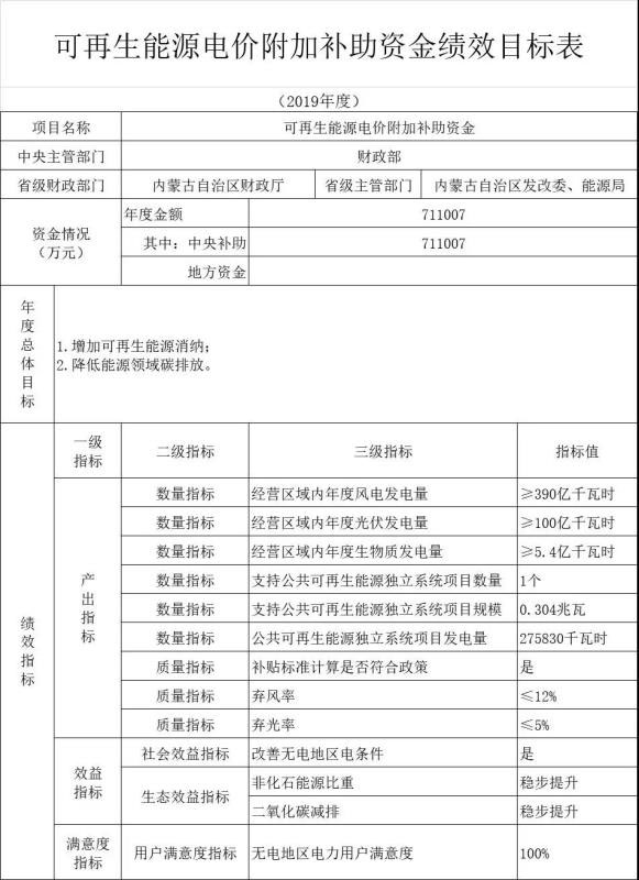 附件:財政部可再生能源電價附加補助資金績效目標表