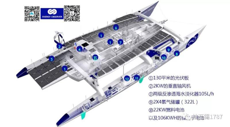 Energy Observer擁有革命性的能源架構(gòu),是世界上第一艘能夠利用可再生能源從海水中生產(chǎn)氫氣的船舶。這是能源獨(dú)立真實(shí)的實(shí)驗(yàn)室,通過在惡劣自然條件下的測算優(yōu)化,最終允許其拓展到陸地上應(yīng)用。