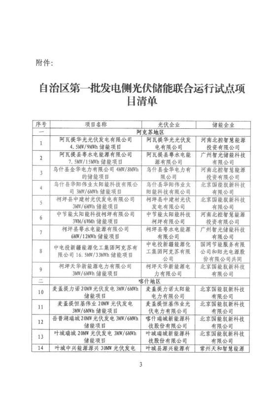另外,新疆發(fā)改委《關(guān)于開(kāi)展發(fā)電側(cè)光伏儲(chǔ)能聯(lián)合運(yùn)行項(xiàng)目試點(diǎn)的通知》中提到,光伏電站配套儲(chǔ)能電站的電價(jià)執(zhí)行所在光伏電站配套儲(chǔ)能電站的電價(jià)執(zhí)行所在光伏電站電價(jià)政策,與光伏電站一體化運(yùn)行并享受相應(yīng)補(bǔ)貼。后續(xù)如國(guó)家出臺(tái)儲(chǔ)能相應(yīng)電價(jià)政策,按照有關(guān)政策執(zhí)行。