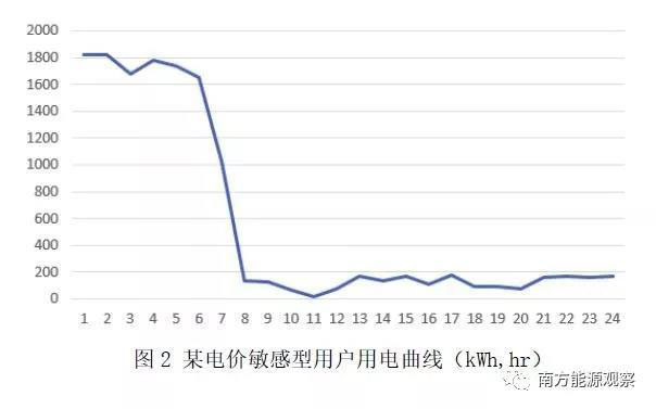 圖3所示為一電費不敏感型用戶某日負(fù)荷曲線。該類企業(yè)可能由于其業(yè)務(wù)特征約束或者用工成本考慮只能在日內(nèi)開展生產(chǎn)。計算可得在原有目錄電價模式下,單日電費為10.02萬元,平均單價為748.9元/MWh。而現(xiàn)貨模式下同日電費大幅下降至6.72萬元,降幅接近三分之一,平均單價降至502.4元/MWh。