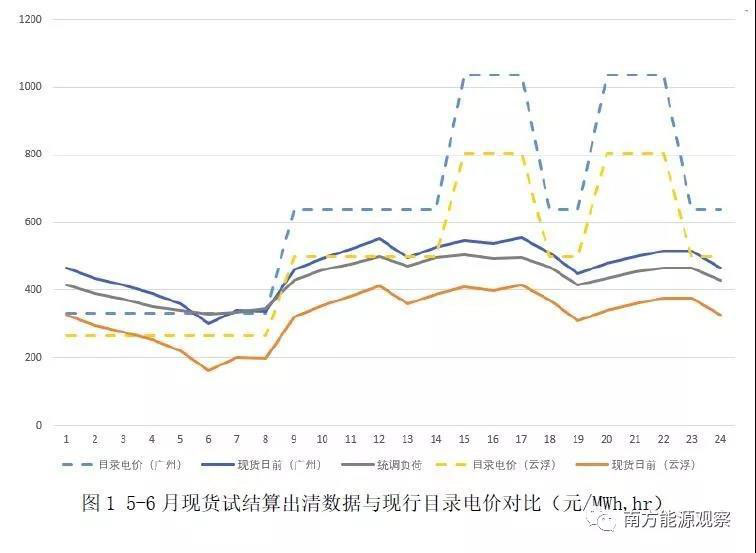 2019年5月15日、5月16日兩天,以及2019年6月20日到6月23日四天,廣東電力現(xiàn)貨市場真刀真槍地嘗試了一次。試結(jié)算6天用戶側(cè)日前統(tǒng)一結(jié)算價均價算數(shù)平均為302.7元/MWh,與目錄電價相比,降價幅度可觀。