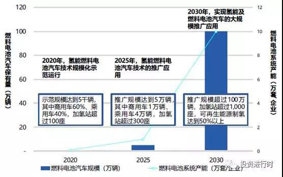 圖表5 我國燃料電池汽車保有量及燃料電池系統(tǒng)產(chǎn)能規(guī)劃