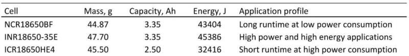 表1. 實驗所用的三種NCA18650電池相關(guān)信息。