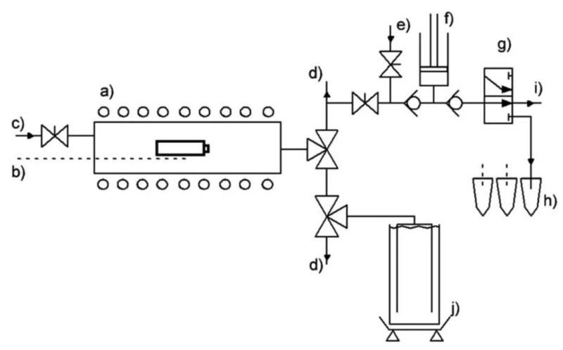 圖1. 老化后電池加熱測試裝置圖[3]: (a)電阻絲加熱爐;(b)熱電偶;(c)惰性氣體入口;(d)放氣口;……