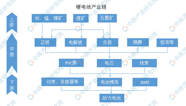 中國擁有豐富的鋰資源和完善的鋰電池產(chǎn)業(yè)鏈,以及龐大的基礎(chǔ)人才儲(chǔ)備,使中國大陸在鋰電池及其材料產(chǎn)業(yè)發(fā)展方面,成為全球最具吸引力的地區(qū),并且已經(jīng)成為全球最大的鋰電池材料和電池生產(chǎn)基地。鋰電池產(chǎn)業(yè)鏈上游包括鈷、錳、鎳礦,鋰礦,石墨礦。在鋰電池制造產(chǎn)業(yè)鏈中,電池包的制造核心部分就是電芯,電芯封裝后再集成線束和PVC膜構(gòu)成電池模組,再加入線束連接器、BMS電路板構(gòu)成動(dòng)力電池成品。
