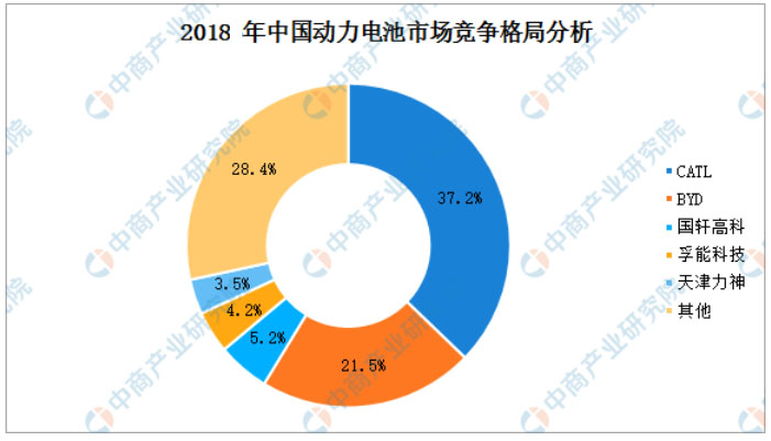 中國鋰離子電池市場保持著高速增長,主要受動(dòng)力電池市場高速增長帶動(dòng)。2018年中國動(dòng)力電池市場前五大企業(yè)產(chǎn)值占比達(dá)71.60%,市場集中度進(jìn)一步提升。