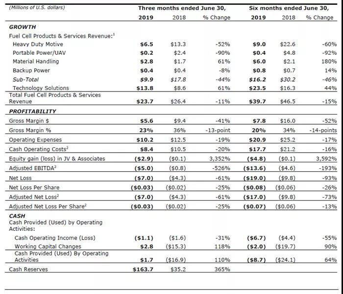 中國儲能網(wǎng)訊:近日,巴拉德動力系統(tǒng)公司公布了其截至2019年6月30日的第二季度綜合財務(wù)業(yè)績。