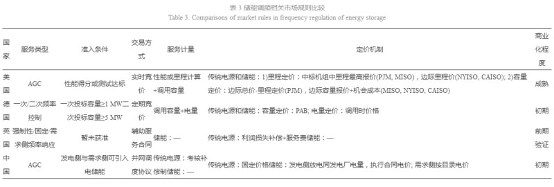 表3儲(chǔ)能調(diào)頻相關(guān)市場(chǎng)規(guī)則比較