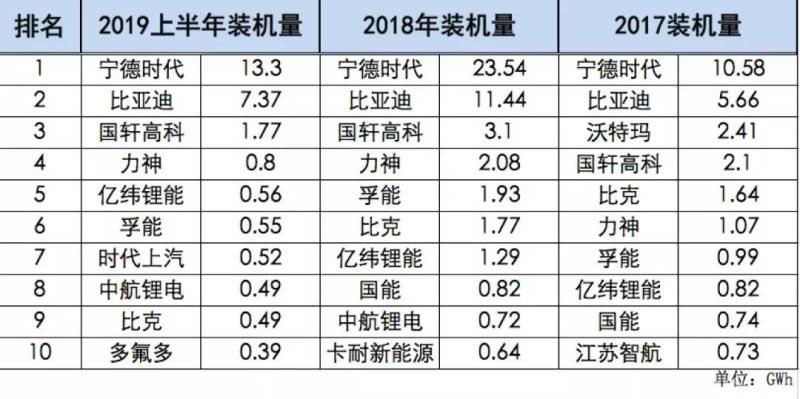 2016年動力電池企業(yè)數(shù)量155家,截止2018年底,有實際裝機量的企業(yè)還有99家,2019年上半年已經降至59家,中小玩家基本已被淘汰殆盡。