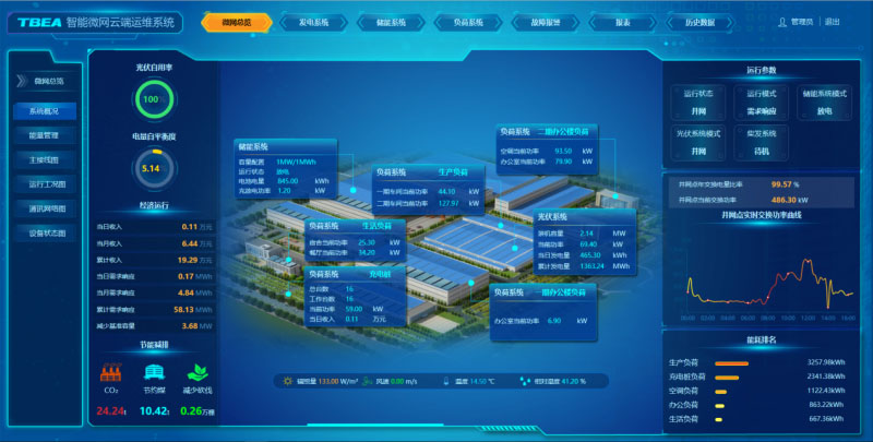 微網(wǎng)示范工程采用站端和云端的雙端運(yùn)維系統(tǒng),基于信息化實(shí)現(xiàn)數(shù)據(jù)驅(qū)動(dòng),借助云計(jì)算實(shí)現(xiàn)數(shù)據(jù)融合,實(shí)現(xiàn)微電網(wǎng)中能源流和信息流的雙向流動(dòng)。集控屏幕上,各類(lèi)設(shè)備實(shí)時(shí)運(yùn)行狀態(tài)、運(yùn)行數(shù)據(jù)、功率曲線以及經(jīng)濟(jì)指標(biāo)全景展示,集控室外,只需通過(guò)網(wǎng)頁(yè)登陸園區(qū)微電網(wǎng)智能運(yùn)維云平臺(tái),就能實(shí)時(shí)掌握微電網(wǎng)的運(yùn)行情況,可以方便快捷地查詢(xún)歷史數(shù)據(jù)、響應(yīng)設(shè)備故障報(bào)警。同時(shí),一站式運(yùn)維正在推進(jìn)當(dāng)中,可利用智能云平臺(tái)實(shí)現(xiàn)微電網(wǎng)全生態(tài)鏈管理和集群化運(yùn)維。