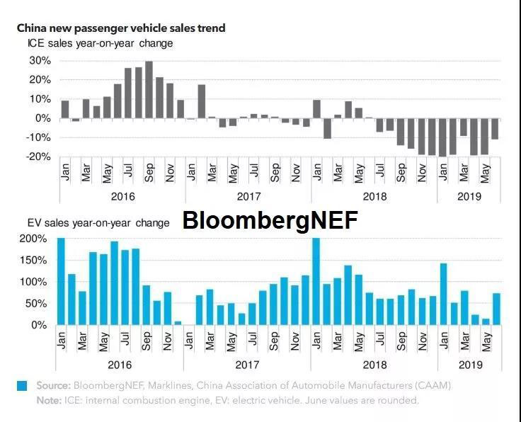 今日市場(chǎng):2019年上半年,中國(guó)新能源汽車銷量達(dá)56萬,比去年同期增長(zhǎng)了55%。新能源汽車占乘用車銷量的5.5%。雖然新能源汽車銷量增長(zhǎng)迅速,但仍未能填補(bǔ)燃油車銷量下滑的缺口。去年6月以來,中國(guó)的燃油車銷量逐月下降,比去年上半年下降了16%。銷量下滑主要是因?yàn)榻?jīng)濟(jì)增速放緩、貿(mào)易關(guān)系緊張和消費(fèi)者偏好的變化。