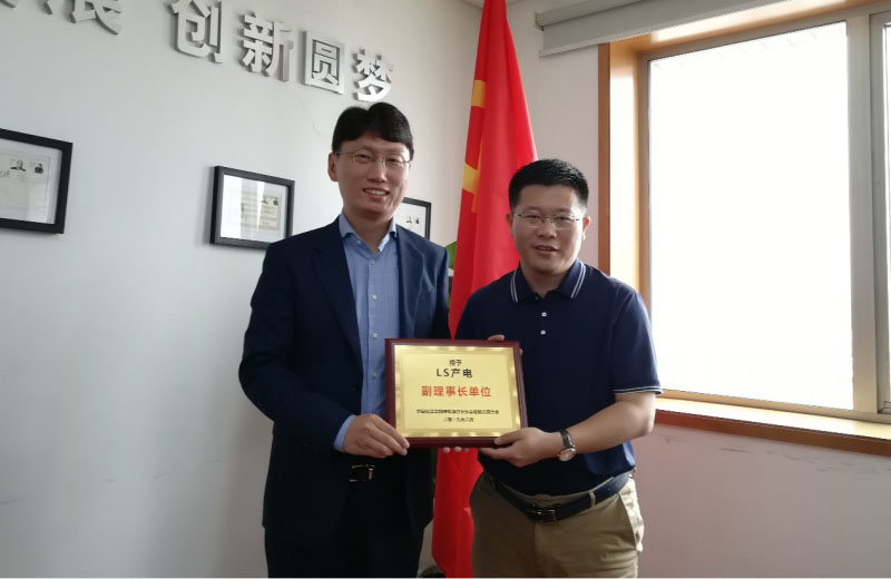 2019年8月5日,中國化學與物理電源行業(yè)協(xié)會儲能應用分會秘書長劉勇先生為LS產(chǎn)電頒發(fā)了副理事長單位牌匾。