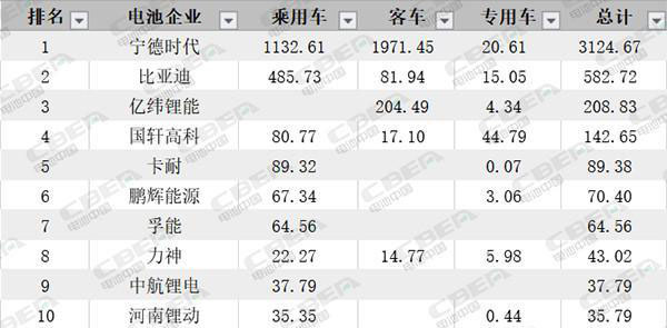 第四、在電池企業(yè)方面,億緯鋰能(29.150, -0.54, -1.82%)挺近前三,卡耐闖進(jìn)前五。寧德時(shí)代(73.330, 1.18, 1.64%)和比亞迪(50.800, -0.57, -1.11%)雙巨頭裝機(jī)量之和占新能源汽車(chē)市場(chǎng)裝機(jī)量的79%。
