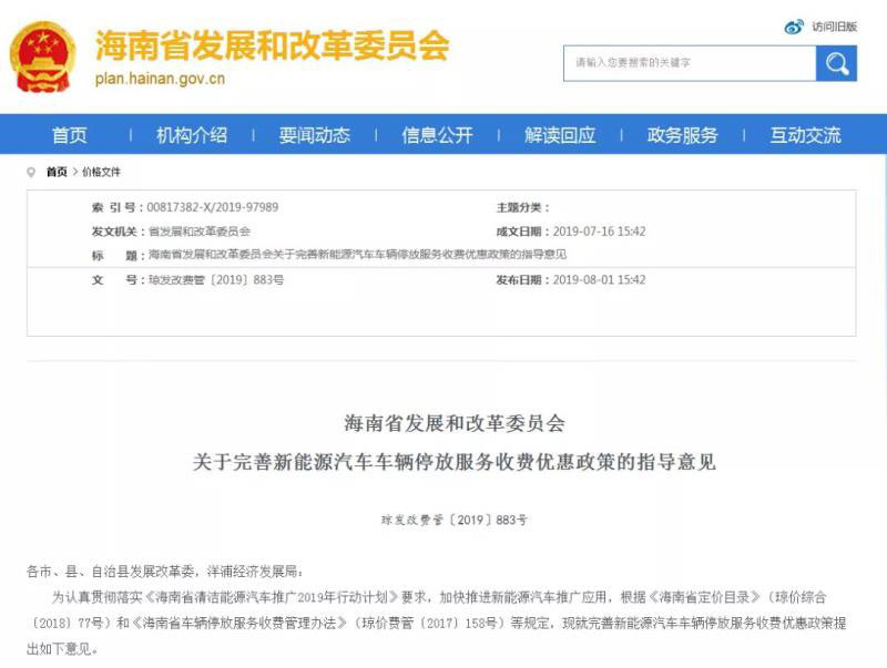 8月1日,海南省發(fā)展和改革委員會發(fā)布《關(guān)于完善新能源汽車車輛停放服務(wù)收費(fèi)優(yōu)惠政策的指導(dǎo)意見》(以下簡稱《意見》),提出一系列指向清晰的指導(dǎo)意見。據(jù)此,海南年內(nèi)將出臺新能源汽車車輛停放服務(wù)收費(fèi)優(yōu)惠政策,不僅比燃油汽車停車收費(fèi)優(yōu)惠,而且新能源汽車在公共區(qū)域停車還將免費(fèi)。