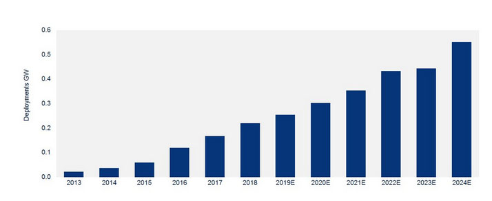 隨著儲能系統(tǒng)成本的不斷降低,Wood Mac公司預(yù)計經(jīng)濟(jì)狀況和市場增長將繼續(xù)改善。