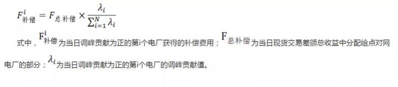 分配給“點(diǎn)對(duì)網(wǎng)”發(fā)電機(jī)組、京津唐電網(wǎng)域內(nèi)發(fā)電機(jī)組的收益納入京津唐電網(wǎng)并網(wǎng)發(fā)電廠調(diào)峰輔助服務(wù)管理體系,根據(jù)每日調(diào)峰貢獻(xiàn)率的比例分配給調(diào)峰貢獻(xiàn)率為正值的發(fā)電機(jī)組。具體算法如下: