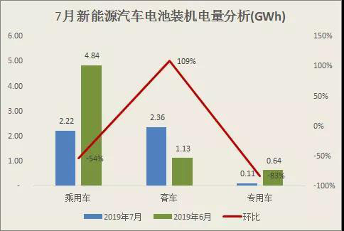 作為新能源汽車的增長主力,新能源乘用車7月電池裝機量“腰斬”下滑,環(huán)比降幅54%??梢钥吹降氖牵笱a貼時代開始讓乘用車市場陷入短期“焦慮”狀態(tài)。新能源專用車下滑更為嚴重,環(huán)比下降83%。而新能源客車則呈現(xiàn)逆勢上揚的態(tài)勢,環(huán)比增長達109%。