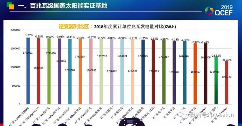 在剛剛過去的青海清潔能源高峰論壇上,來自于黃河水電的數據顯示,在其牽頭建設的青海共和“百兆瓦太陽能發(fā)電實證基地”,2018年度累計單位兆瓦發(fā)電量統計數據顯示,1500V集中式發(fā)電最高,平均比1000V提高2%左右。