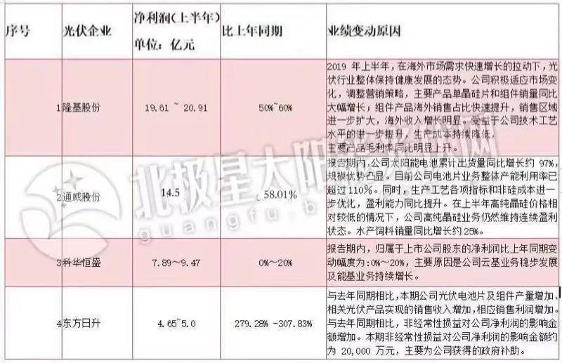 時至8月,光伏企業(yè)陸續(xù)公布了上半年業(yè)績預(yù)報告。在統(tǒng)計的20家光伏上市公司中,共有15家企業(yè)在上半年盈利。其中隆基股份預(yù)期凈利潤達(dá)19.61 ~ 20.91 億元,堪稱盈利王。根據(jù)通威14日公布的上半年財報,報告期內(nèi)凈利潤為14.5億元,同比增長58%,排行第二??迫A恒盛以7.89~9.47億元,位列第三。