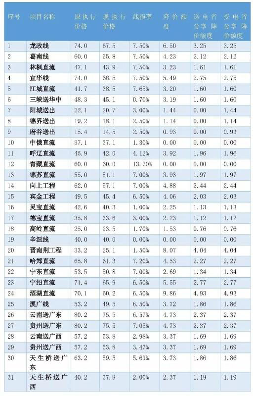 比較標桿電價統(tǒng)一采用火電的標桿電價,現(xiàn)將已公布輸配電價省份的電網(wǎng)企業(yè)每度電的收益變化匯總?cè)缦隆?