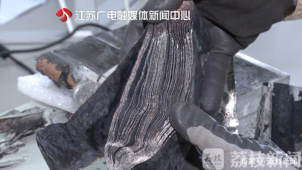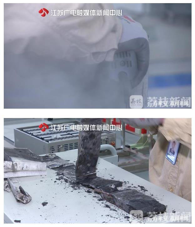 經(jīng)過燃燒之后的鋰電池,內(nèi)部會(huì)產(chǎn)生什么變化呢?實(shí)驗(yàn)人員對(duì)這塊鋰電池,進(jìn)行了現(xiàn)場(chǎng)切割……