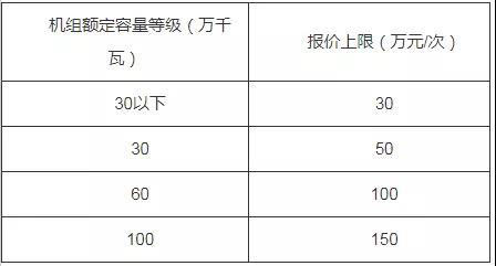 火電機組按照機組額定容量對應(yīng)的應(yīng)急啟停調(diào)峰服務(wù)報價區(qū)間浮動報價,如下