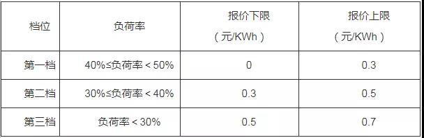 實時深度調(diào)峰交易采用“階梯式”報價方式和價格機制,采用負荷率分段式報價,具體分檔和報價上、下限見下表: