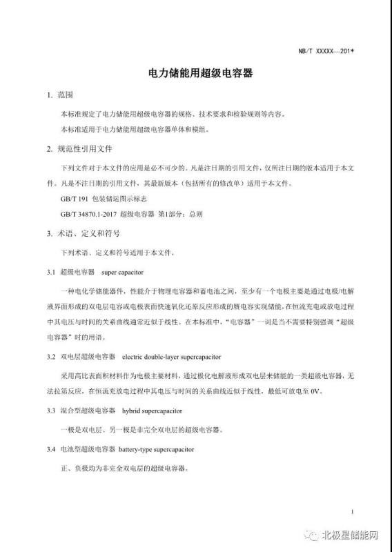 《電力儲能用超級電容器》能源行業(yè)標準征求意見稿