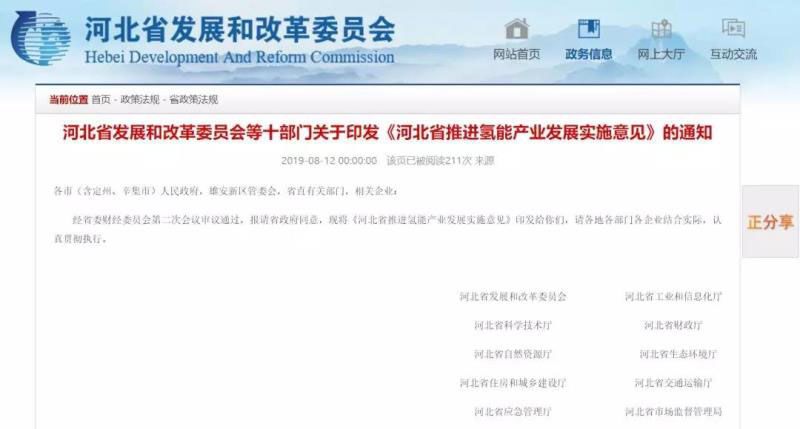 建立由省政府分管領導牽頭負責,省發(fā)展改革委、省工業(yè)和信息化廳、省科學技術廳、省財政廳、省住房和城鄉(xiāng)建設廳、省交通運輸廳、省自然資源廳、省生態(tài)環(huán)境廳、省應急管理廳、省市場監(jiān)督管理局、國家稅務總局河北省稅務局、省國資委、省金融辦等相關部門參與的氫能產業(yè)發(fā)展協調推進機制,研究制定產業(yè)發(fā)展規(guī)劃、協調解決重大問題,完善配套支持政策,推進應用示范項目建設。