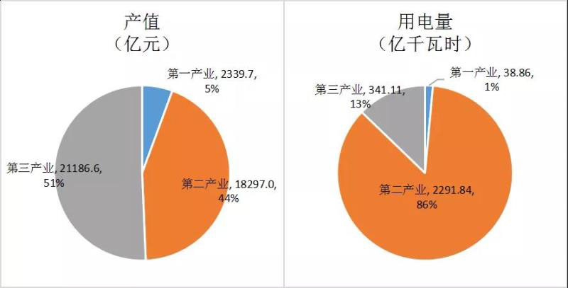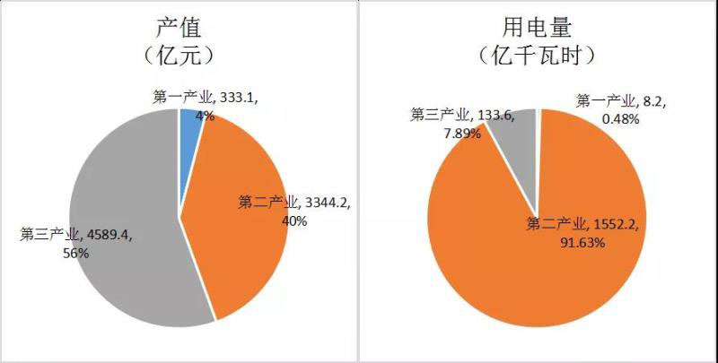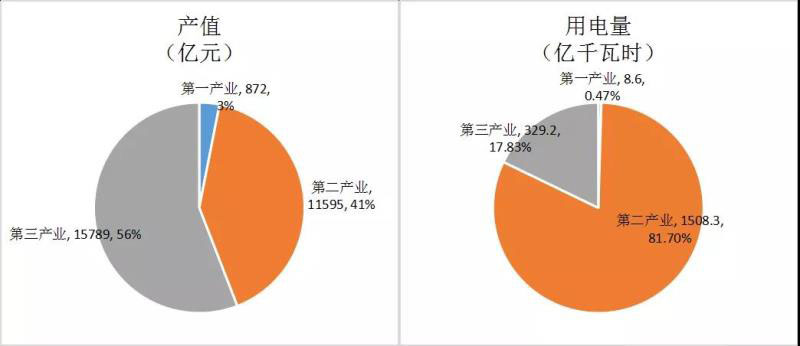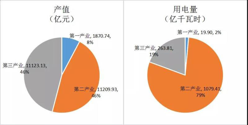 2019年上半年浙江省三產(chǎn)產(chǎn)值與用電量結(jié)構(gòu)對(duì)比圖