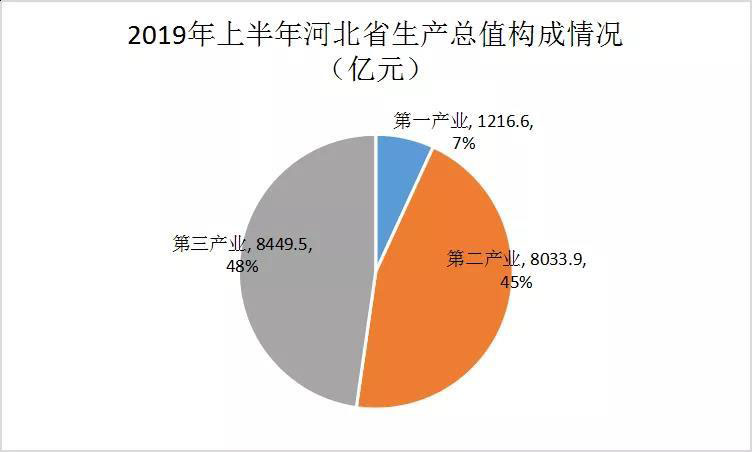 上半年,河北地區(qū)生產(chǎn)總值17700.0億元,比上年同期增長7.1%,增速同比加快0.6個(gè)百分點(diǎn)。分產(chǎn)業(yè)看,第一產(chǎn)業(yè)增加值1216.6億元,增長1.3%;第二產(chǎn)業(yè)增加值8033.9億元,增長6.9%;第三產(chǎn)業(yè)增加值8449.5億元,增長8.2%。三次產(chǎn)業(yè)增加值比重由上年同期的6.9:47.3:45.8調(diào)整為6.9:45.4:47.7。