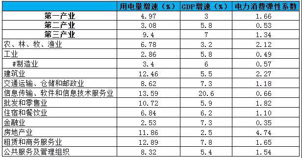 具體到各行業(yè)用電及GDP增速,請(qǐng)看下表。
