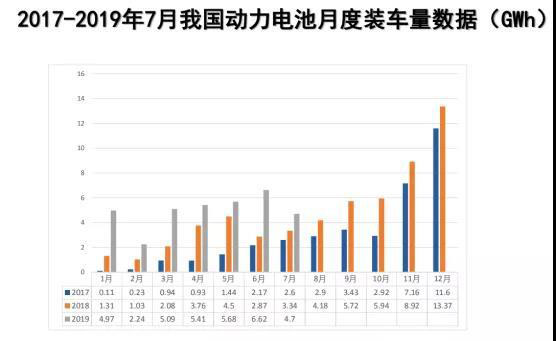 此外,截止2019年7月,我國(guó)動(dòng)力電池2019年的裝車量累計(jì)為34.7GWh,其中三元電池裝車量累計(jì)23.4GWh,占總裝車67.5%;磷酸鐵鋰電池裝車量累計(jì)10.4GWh,占總裝車量29.9%。