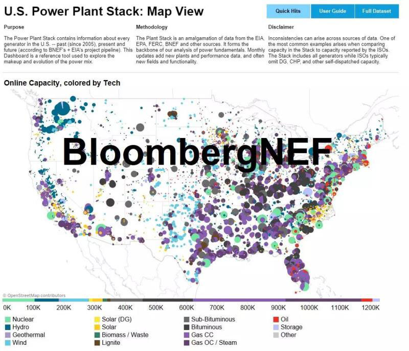 彭博新能源財經(jīng)用戶可訪問“美國電廠數(shù)據(jù)庫”網(wǎng)頁互動工具,了解美國所有能源技術(shù)的每個電廠的運營歷史、現(xiàn)狀和未來預(yù)期。