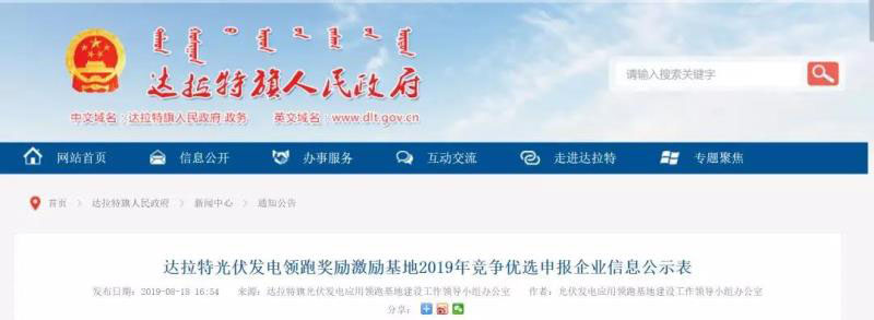 8月18日,達(dá)拉特旗光伏發(fā)電領(lǐng)跑獎(jiǎng)勵(lì)激勵(lì)基地公示了2019年競(jìng)爭(zhēng)優(yōu)選申報(bào)企業(yè)信息,其中特變電工申報(bào)電價(jià)0.24元/KWh,為諸多企業(yè)中最低報(bào)價(jià)。