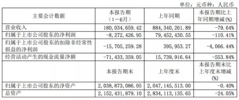 8月18日,玉龍股份(601028)半年報公告顯示,1-6月公司實現(xiàn)營收1.8億元,同比下滑79.64%;歸屬于上市公司股東的凈利潤-827.2萬元,較去年同期7945.2萬同比下滑110.41%。